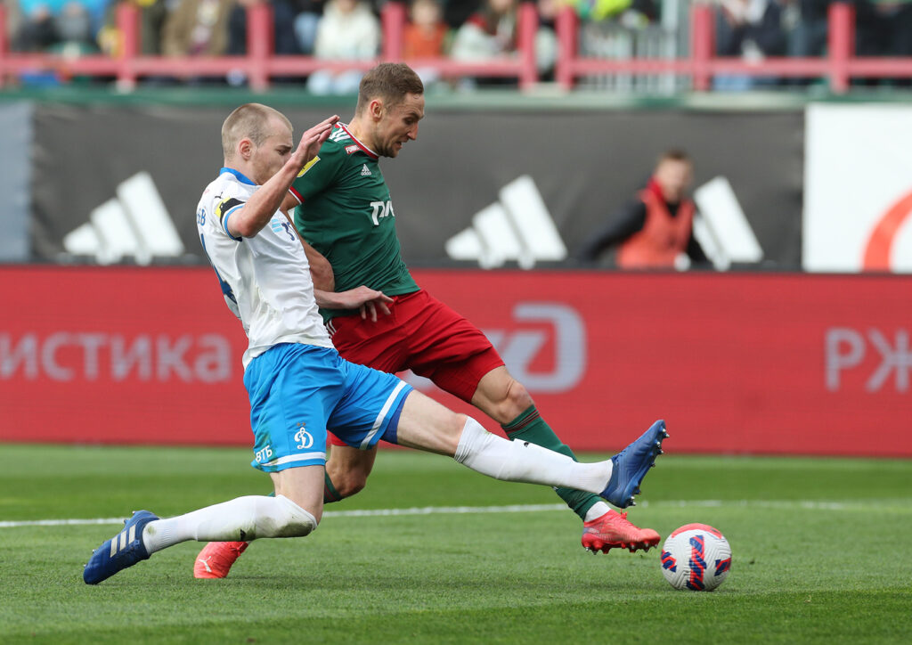 Útočník Jan Kuchta teď Slavii chybí. Na snímku v akci v květnovém derby proti Dynamu Moskva (3:3). / Zdroj fotografie: fclm.ru