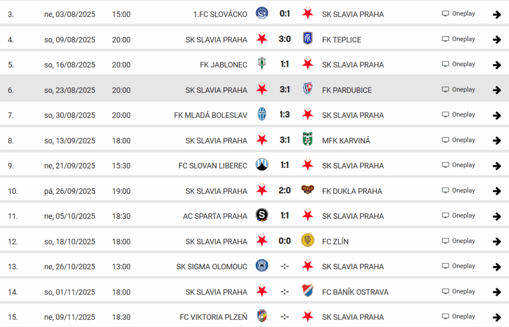 A ty dva zbylé zápasy? Zatímco loni Slavia z 18 domácích ligových nenechala žádnému soupeři ani bod, letos brala v Edenu remízu už se druhým týmem. Titulovou formu teď rozhodně nemá, a to ji nyní čeká trojice těžkých bitev – venku Olomouc, doma Baník a venku Plzeň. A to nemluvíme o Atalantě a Arsenalu v Lize mistrů.