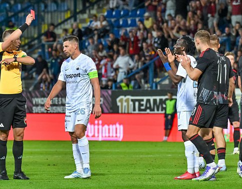 Pokud fanoušci domácích ještě drželi určitou naději, že se Liberec v utkání zmátoří a stane se důstojným soupeřem, srazil je po půlhodině hry Aziz Kayondo. Sympatický obránce a ve většině zápasů také záruka vysoké herního standartu se nechal po půlhodině školácky vyloučit. Kayondo neuposlechl základní fotbalovou poučku, že lepší gól dostat, než se nechat vyloučit a zbytečně zatáhl za dres unikajícího Birmančeviče. Ten nabídnuté šance využil, flákl sebou na zem a zdrcený Kayondo šel do sprch. O to horší, že u balónu by byl pravděpodobně dřív Koubek než srbský rychlík a Kayondův zákrok byl tak dvakrát zbytečný. Taxativní červená. Zápas na který se celý Liberec těšil, skončil podstatně dříve než kdokoliv na severu chtěl.